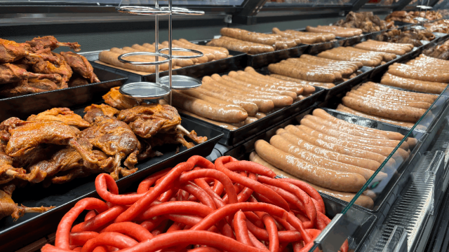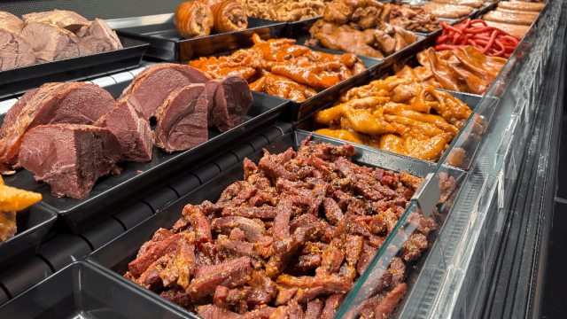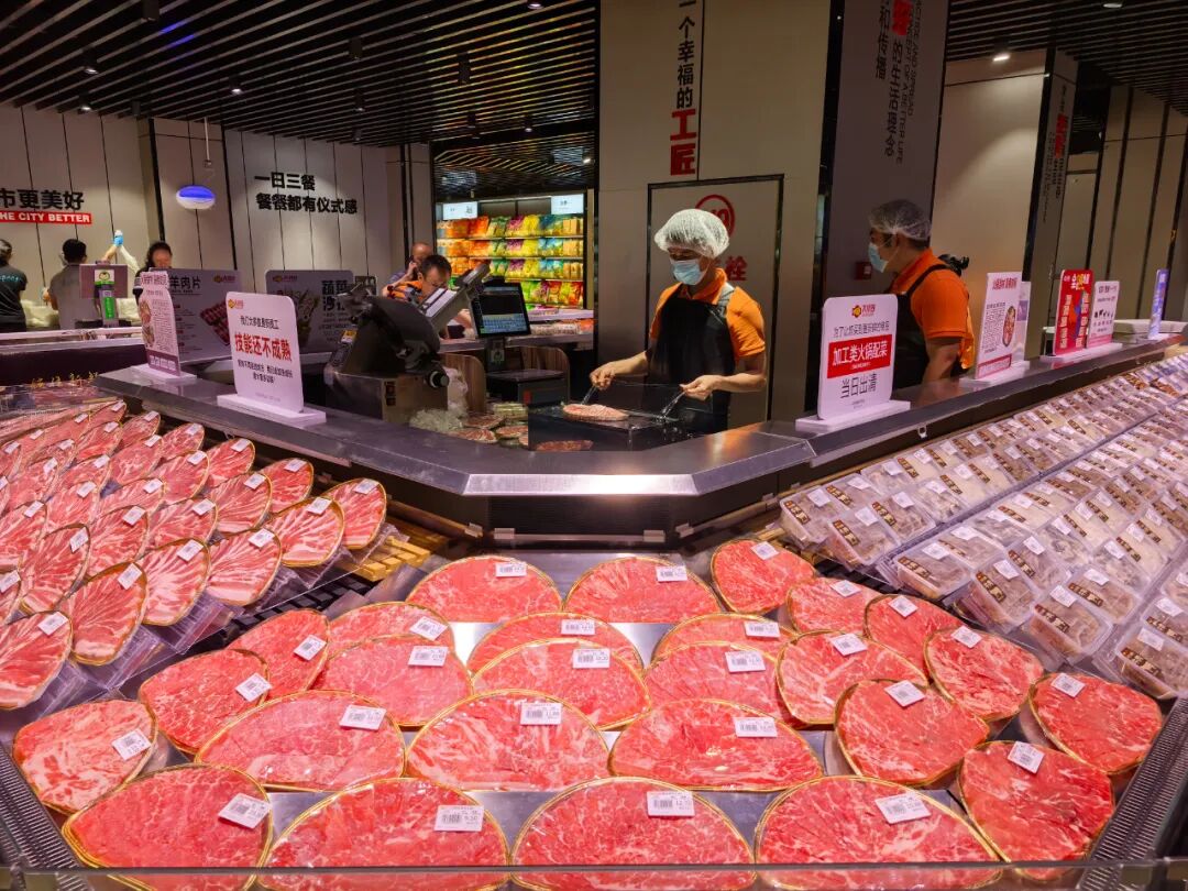 熟食区全部明档现制,由专业团队制作,从原材料和制作工艺确保品质与安全,并引进了胖东来的优质供应商,同时也推出了秘制卤肉肠、豆瓣甜肠、香辣牛肉条等胖东来同款熟食爆品。各种诱人的香气交织,形成了卖场独特的烟火气。