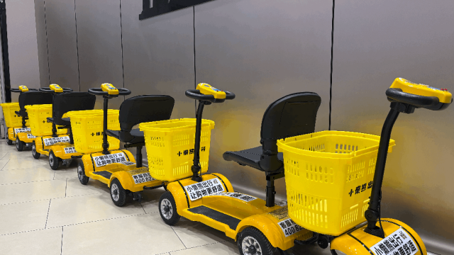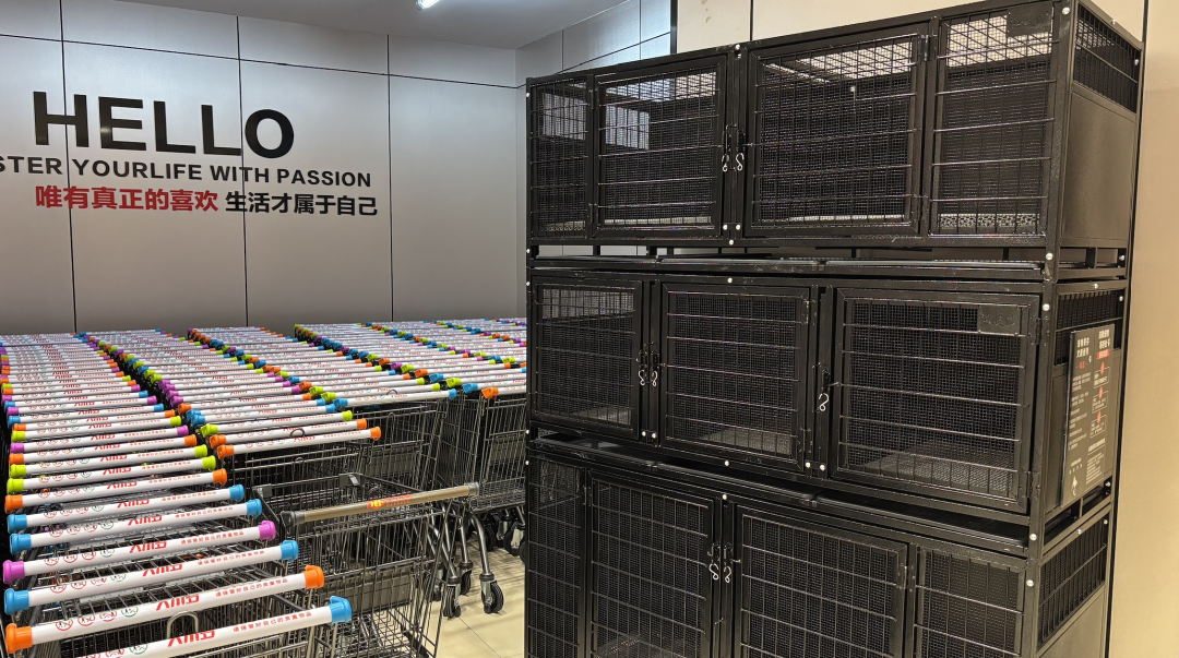 门店还提供寄存服务,寄存柜为人脸识别模式,顾客点击“存”按钮,刷脸后柜门自动打开;取包时,点击“取”按钮,刷脸后柜门自动解锁,操作简单方便。此外,针对特殊需求顾客,门店备有轮椅、婴儿车、可骑行购物车、宠物寄存柜等设施设备,从细节处为顾客考虑。
